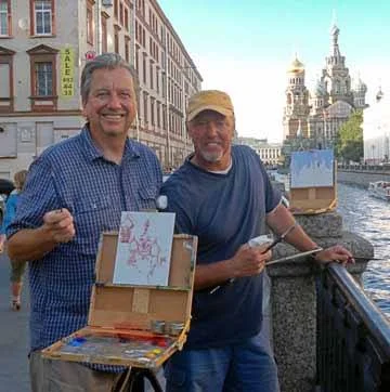 Eric and Scott Christensen painting in Russia